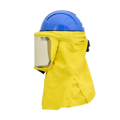This safety helmet combines respiratory protection with protection of the head, face and ears (optional). The long hood provides protection down to the shoulders.