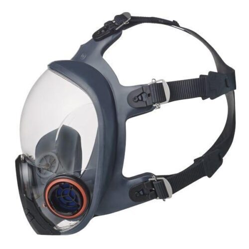 Ultra lightweight FS01 Full Face reusable respirator with 6-point head harness, anti-fog visor and speech diaphragm.